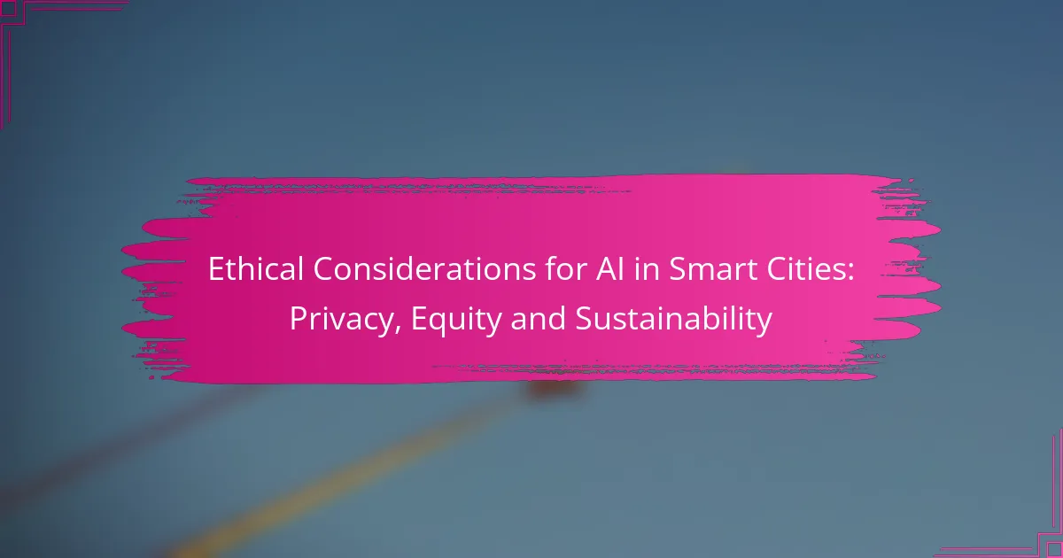 The integration of AI in smart cities raises significant ethical considerations, particularly concerning privacy, equity, and sustainability. Addressing these issues is crucial to ensure that technological advancements serve all citizens effectively while mitigating potential risks. By prioritizing robust data management and equitable access, smart cities can foster an inclusive environment that maximizes benefits for every community member.